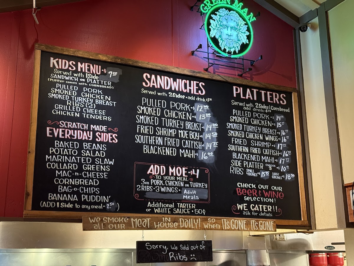 We love Moe's Original. Their pulled pork is divine and so is their smoked chicken...and all of their sides! You really can't go wrong with anything you choose. Their staff is friendly and helpful.