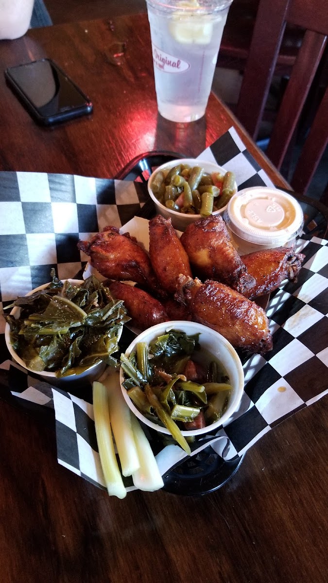 My favorite wing stop in the Asheville area. They are consistently delicious and the sides don't disappoint either. The collards are well seasoned with chunks of Keilbasa and they're always tender and tasty.