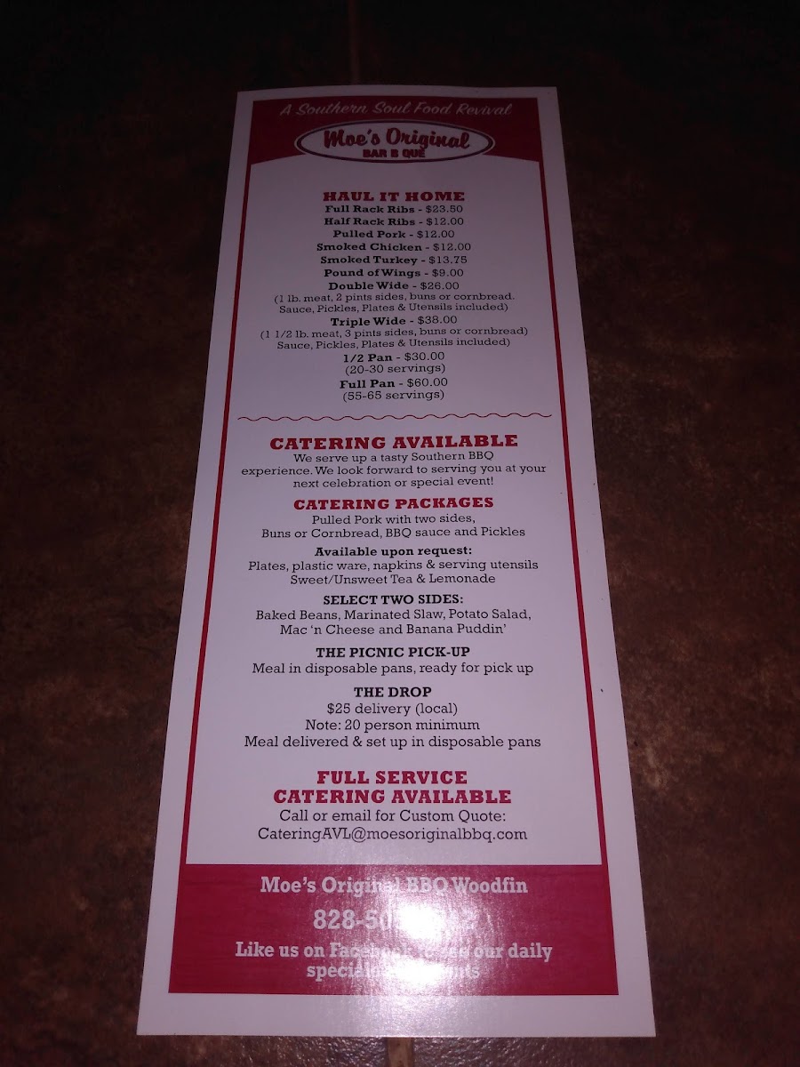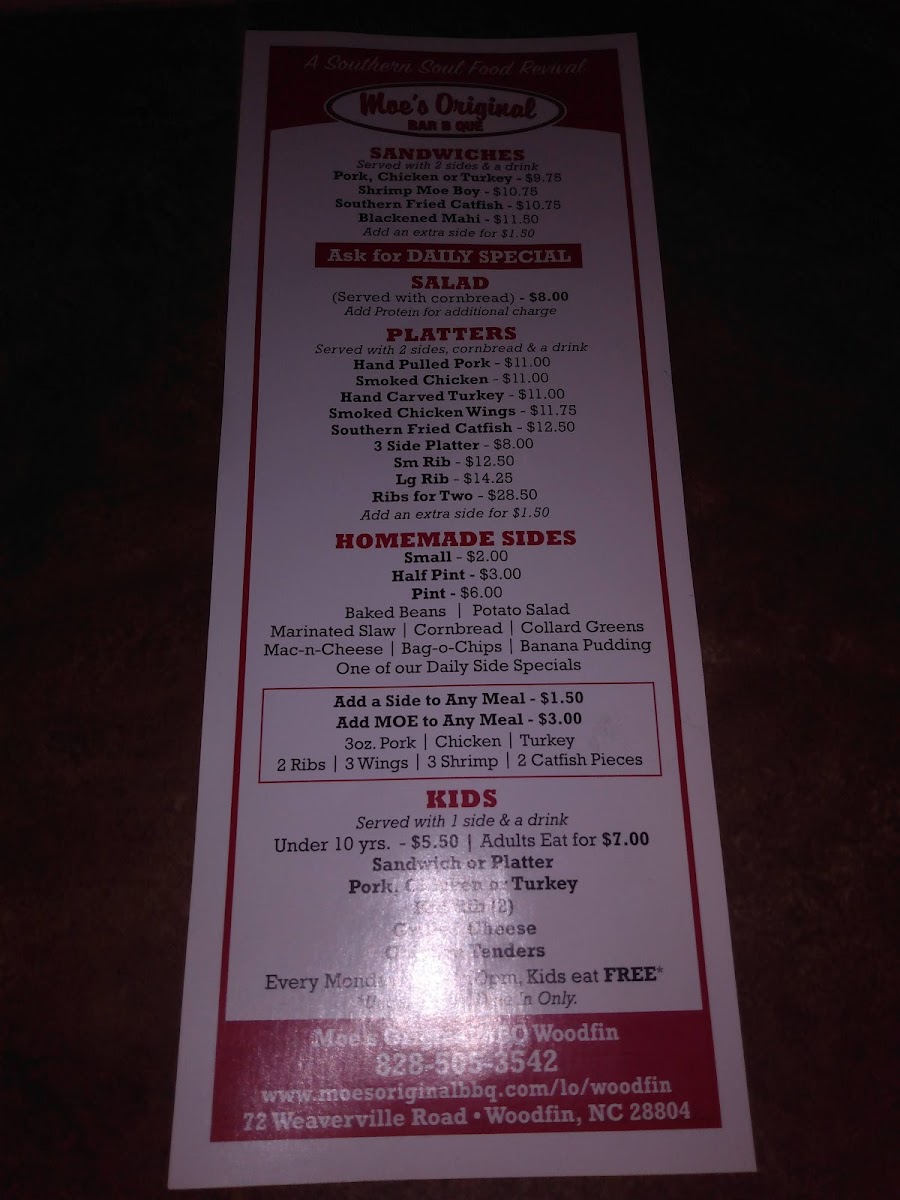 The menu at Moe's Original BBQ offers a comforting blend of Southern barbecue classics and hearty sides in a relaxed, family-friendly setting. Whether you're stopping by for a casual lunch, an evening meal with friends, or a laid-back dinner while enjoying live music, the dishes invite easy enjoyment without fuss.